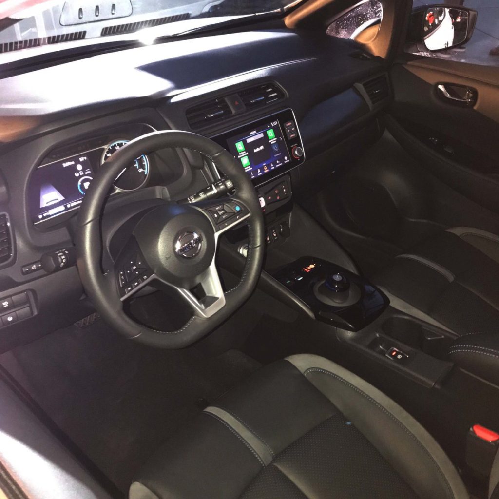 La novedad de LEAF e+ (en los modelos comercializados en norteamericanos y la Unión Europea) es un transistor de película delgada más grande, pantalla a todo color de 8 pulgadas, con un sistema de navegación actualizado que puede conectarse a un teléfono inteligente compatible. La pantalla presenta una operación similar a la de un teléfono inteligente, que incluye deslizar, desplazar y tocar. Las aplicaciones, los mapas y el firmware se actualizan con solo tocar un botón.