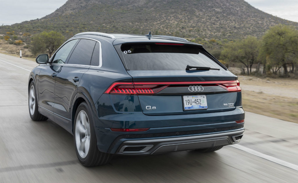 El nuevo modelo de la familia Q está equipado con un potente y eficiente motor 3.0 TFSI que rinde una potencia de 340 hp. El Q8 se define como un auto versátil con dimensiones de 4.986 mm de largo, 1.995 mm de ancho y 1.705 mm de alto que hablan de deportividad y prestigio como en ningún otro todoterreno de la marca de los cuatro aros. El nuevo SUV es más ancho, más corto y más bajo que su hermano, el Audi Q7. Con una distancia entre ejes de casi 3 metros, ofrece un generoso espacio con un habitáculo que mejora al de sus rivales más directos en las dimensiones más relevantes, incluyendo la longitud y la altura. Para la parte posterior existe la posibilidad de montar tres asientos individuales con regulación longitudinal. Con los respaldos de los asientos posteriores abatidos, la cajuela alcanza un volumen de 1,755 litros. Con la imponente parrilla Singleframe de diseño octogonal, el Audi Q8 se presenta como la nueva cara de la familia Q de Audi.