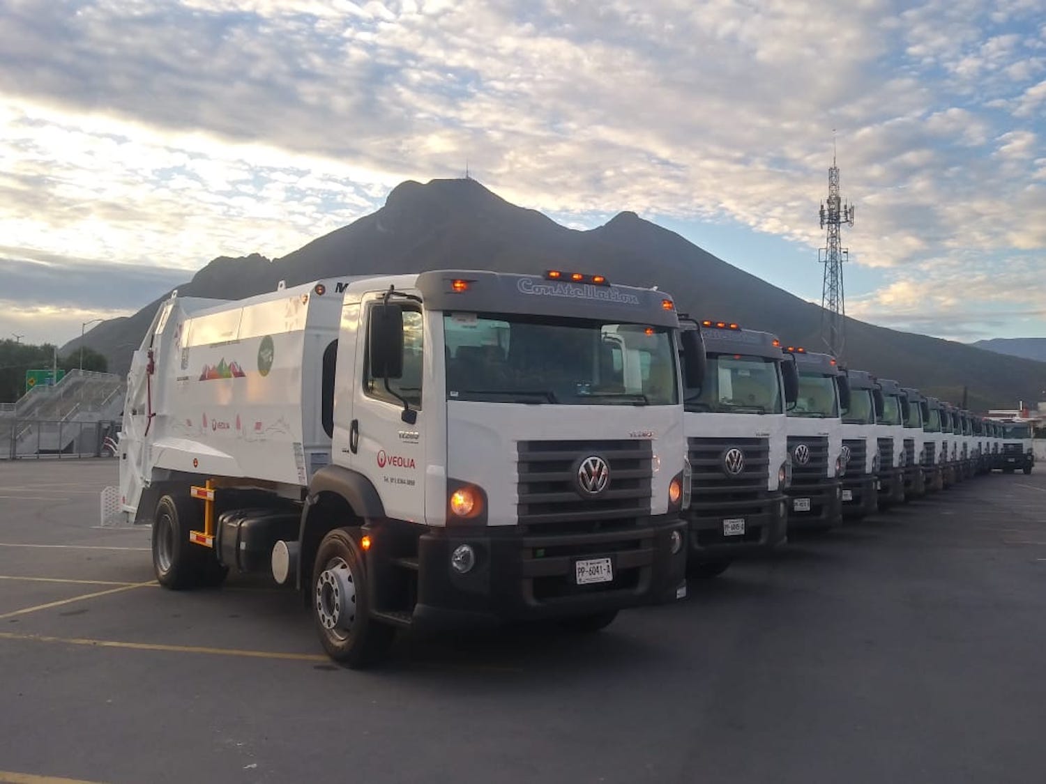 Veolia, referente internacional en el manejo integral de residuos, agua y energía, fortalece su compromiso con el Ayuntamiento de Guadalupe presentando las 32 unidades Volkswagen Constellation 17.280 (Motor MAN D0836 de 275 Hp, 6 cilindros, tecnología de emisiones EGR, Euro 5) con caja de McNelius, para seguir abonando al cuidado del medio ambiente a través del servicio de recolección de residuos sólidos urbanos y de manejo especial que la empresa opera en la ciudad.