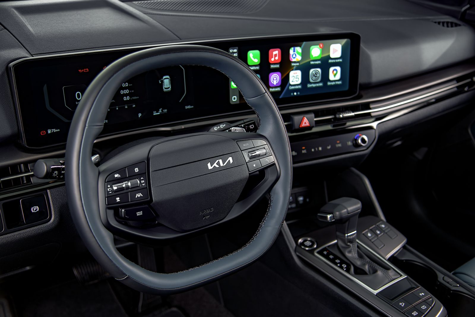 El habitáculo de la Sportage 2026 confirma la madurez de Kia. La doble pantalla de 12.3 pulgadas con el nuevo sistema ccNC Lite ofrece una interfaz más rápida, limpia y configurable. Destaca la compatibilidad inalámbrica con Apple CarPlay y Android Auto, así como la función Mirror, que proyecta el contenido del teléfono cuando la palanca está en Parking.