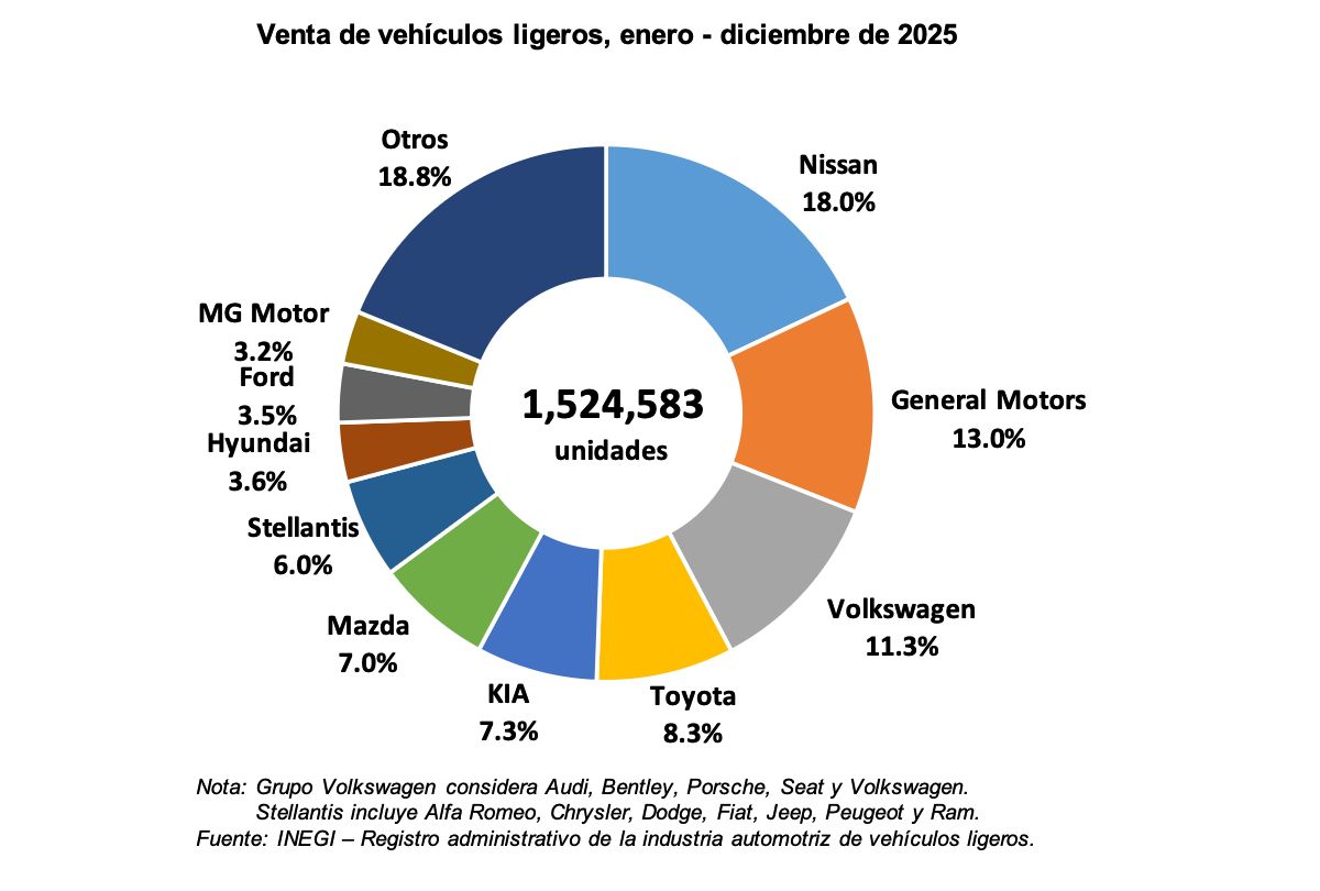 Crecieron 1.3% anual impulsada por un diciembre sólido y marcas asiáticas JULIOBRITO A. jbritoa@yahoo.com La industria automotriz en México ha cerrado el 2025 con un hito significativo. De acuerdo con las cifras publicadas por el INEGI, AMIA y AMDA, el mercado interno logró desplazar 1,524,583 unidades durante el año, lo que representa un crecimiento del 1.3% frente a las cifras de 2024. Este resultado consolida la recuperación del sector y marca uno de los mejores niveles de ventas en la…